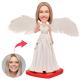 Female White Dressing with Wings Custom Bobbleheads With Engraved Text