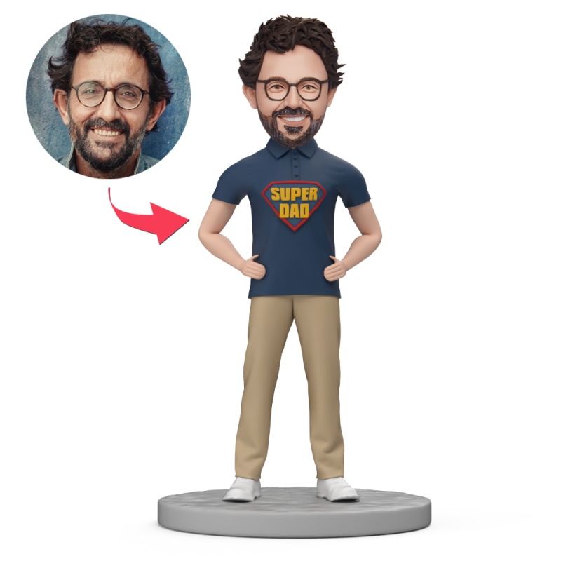 Gift for Super Dad in Sportswear Custom Bobblehead with Engraved Text