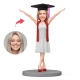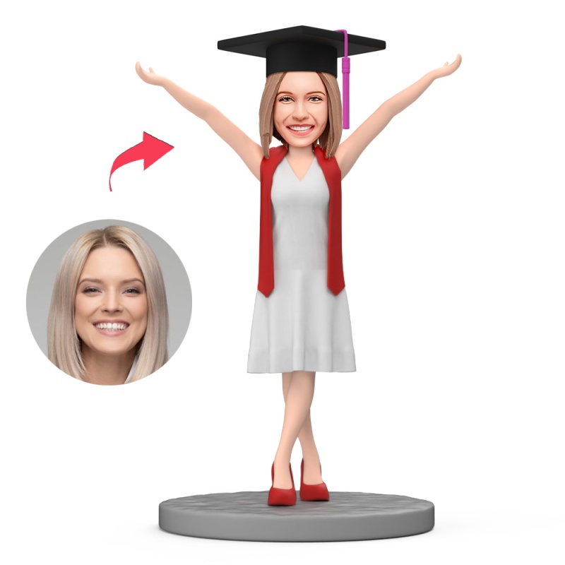 Graduation Gift White Graduation Dress and Red Sash Custom Bobblehead with Engraved Text