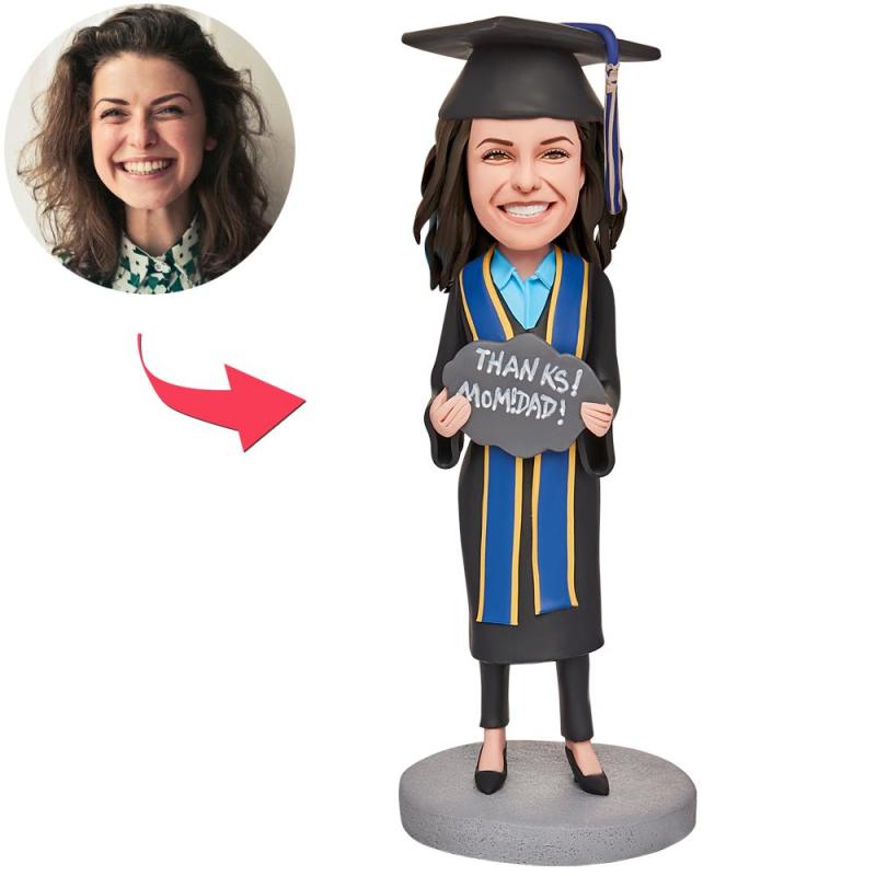 Graduation Girl Thanks Parents Custom Bobbleheads With Engraved Text