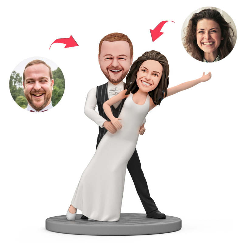 Groom Holding Bride Dance Wedding Custom Bobblehead with Engraved Text