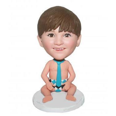 Kid With Diaper And A Blue Tie Custom Bobblehead With Engraved Text