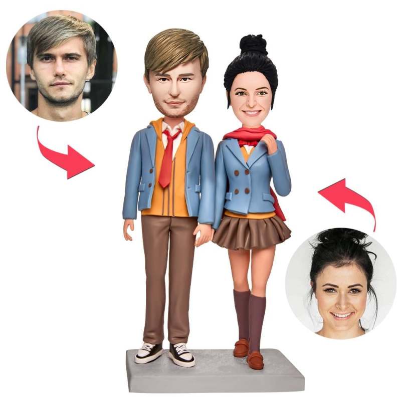 Lovers in Matching Outfits Custom Bobbleheads With Engraved Text
