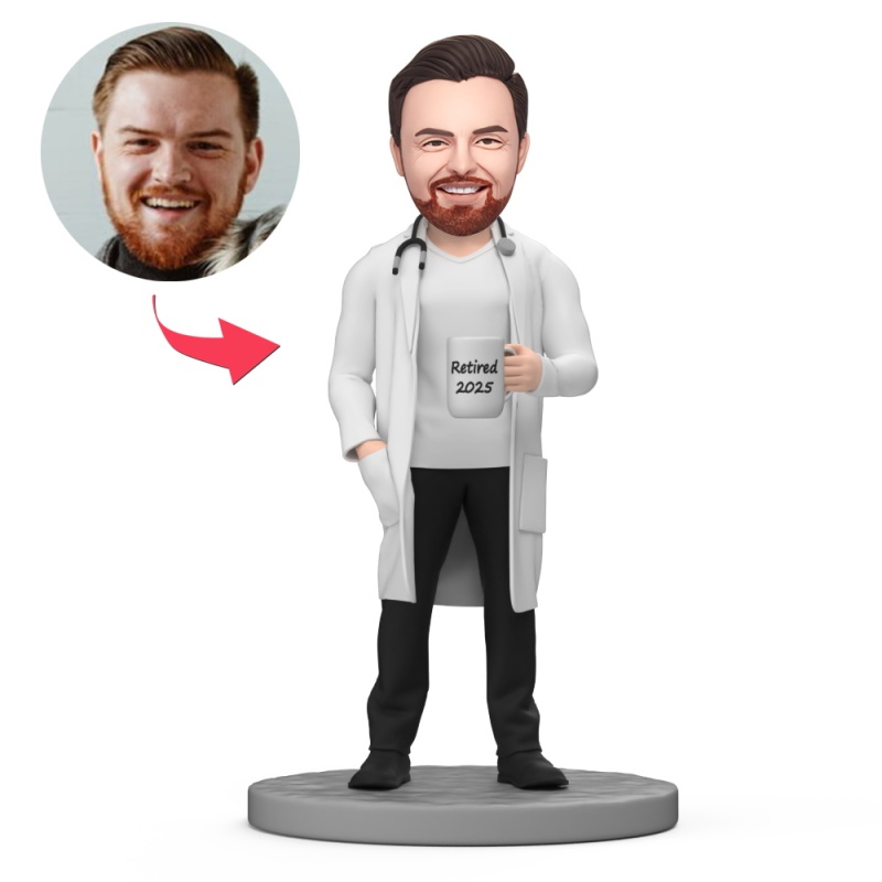Male Doctor 2025 Retire Custom Bobblehead with Engraved Text