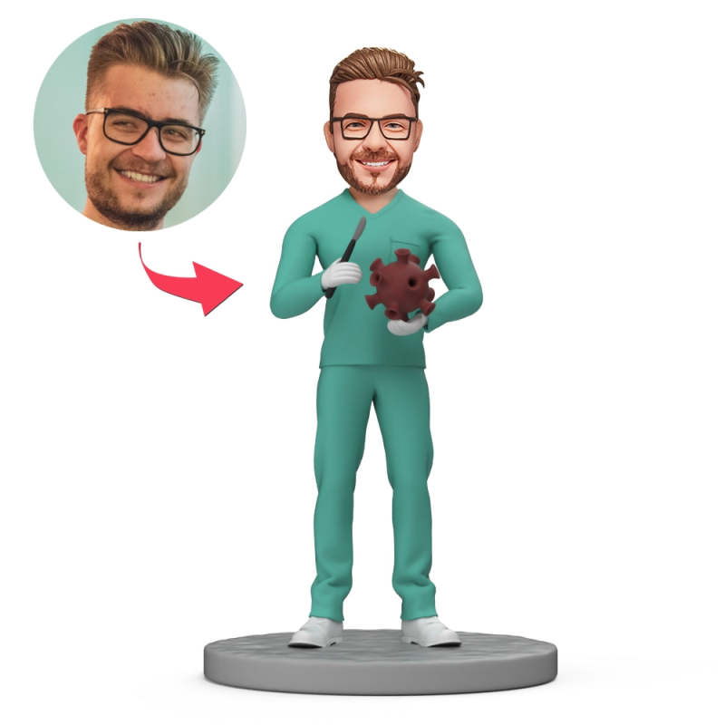 Male Doctor Hold Bacteria Custom Bobblehead with Engraved Text