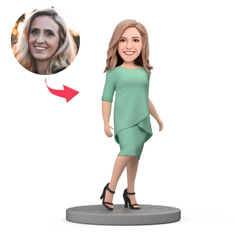 Mother's Day Gift Custom Bobblehead - Fashion Mom in A Green Dress