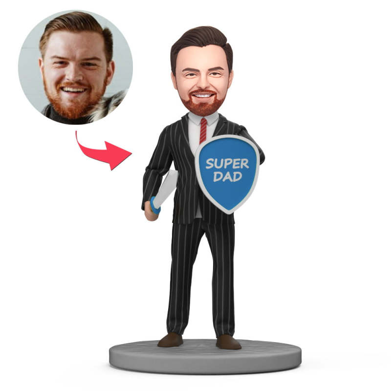 Super Dad with Shield and Sword Custom Bobbleheads with Engraved Text